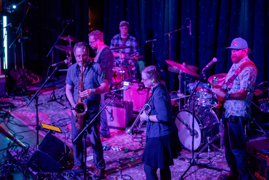 It’s a melee of horns, super heavy drums and bass and your favorite type of chunky guitar riffing that leaves your bum shaking and your face grinning. Highly improvised, kinetic, with effect-soaked horns creating textural soundscapes, our vibe is high-energy and dance-focused – interlocking rhythms and syncopation keep us in the pocket and the dancers moving.