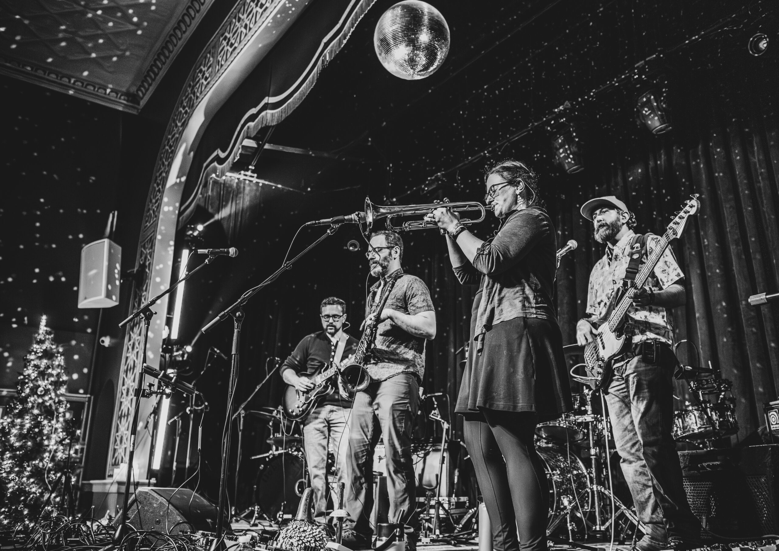 It’s a melee of horns, super heavy drums and bass and your favorite type of chunky guitar riffing that leaves your bum shaking and your face grinning. Highly improvised, kinetic, with effect-soaked horns creating textural soundscapes, our vibe is high-energy and dance-focused – interlocking rhythms and syncopation keep us in the pocket and the dancers moving.