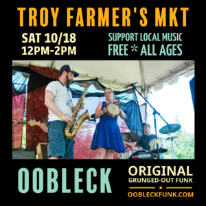 Join Oobleck for a paired down afternoon set of horn funk at the Troy Farmer’s Mkt!